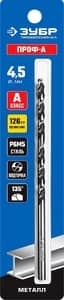ЗУБР ПРОФ-А, 4.5 х 126 мм, сталь Р6М5, класс А, удлиненное сверло по металлу, Профессионал (29624-4.5)
