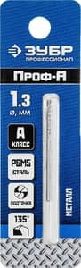 ЗУБР ПРОФ-А, 1.3 х 38 мм, сталь Р6М5, класс А, сверло по металлу, Профессионал (29625-1.3)