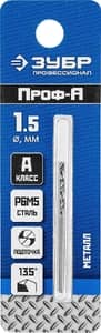 ЗУБР ПРОФ-А, 1.5 х 40 мм, сталь Р6М5, класс А, сверло по металлу, Профессионал (29625-1.5)