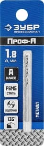 ЗУБР ПРОФ-А, 1.8 х 46 мм, сталь Р6М5, класс А, сверло по металлу, Профессионал (29625-1.8)