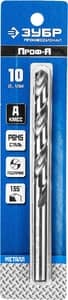 ЗУБР ПРОФ-А, 10.0 х 133 мм, сталь Р6М5, класс А, сверло по металлу, Профессионал (29625-10)