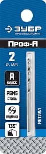 ЗУБР ПРОФ-А, 2.0 х 49 мм, сталь Р6М5, класс А, сверло по металлу, Профессионал (29625-2)