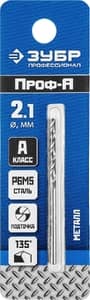 ЗУБР ПРОФ-А, 2.1 х 49 мм, сталь Р6М5, класс А, сверло по металлу, Профессионал (29625-2.1)