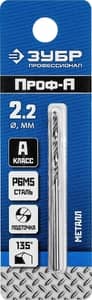 ЗУБР ПРОФ-А, 2.2 х 53 мм, сталь Р6М5, класс А, сверло по металлу, Профессионал (29625-2.2)