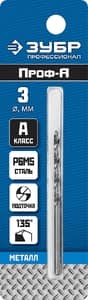 ЗУБР ПРОФ-А, 3.0 х 61 мм, сталь Р6М5, класс А, сверло по металлу, Профессионал (29625-3)