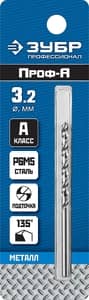 ЗУБР ПРОФ-А, 3.2 х 65 мм, сталь Р6М5, класс А, сверло по металлу, Профессионал (29625-3.2)