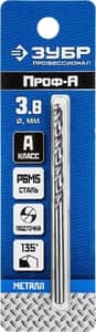 ЗУБР ПРОФ-А, 3.8 х 75 мм, сталь Р6М5, класс А, сверло по металлу, Профессионал (29625-3.8)