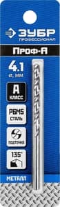 ЗУБР ПРОФ-А, 4.1 х 75 мм, сталь Р6М5, класс А, сверло по металлу, Профессионал (29625-4.1)