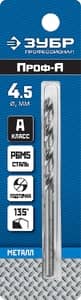 ЗУБР ПРОФ-А, 4.5 х 80 мм, сталь Р6М5, класс А, сверло по металлу, Профессионал (29625-4.5)