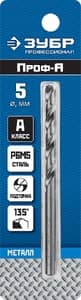ЗУБР ПРОФ-А, 5.0 х 86 мм, сталь Р6М5, класс А, сверло по металлу, Профессионал (29625-5)