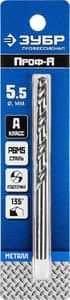ЗУБР ПРОФ-А, 5.5 х 93 мм, сталь Р6М5, класс А, сверло по металлу, Профессионал (29625-5.5)