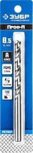 ЗУБР ПРОФ-А, 8.5 х 117 мм, сталь Р6М5, класс А, сверло по металлу, Профессионал (29625-8.5)